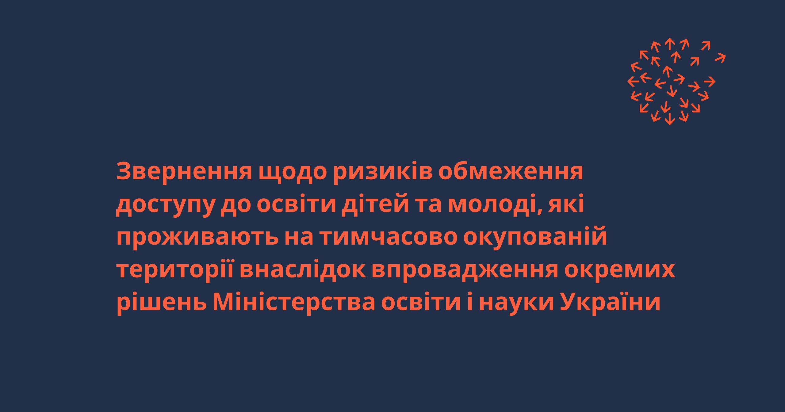 Звернення щодо ризиків обмеження доступу до освіти дітей та молоді, які проживають на тимчасово окупованій території внаслідок впровадження окремих рішень Міністерства освіти і науки України – Громадський холдинг "ГРУПА ВПЛИВУ"